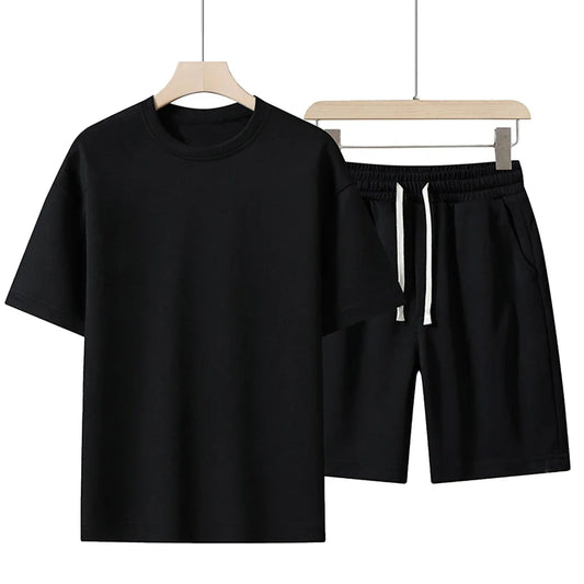 Summer Cotton T-Shirt & Shorts Set – Unisex Solid Colour Streetwear | Breathable O-Neck Tracksuit for Men & Women