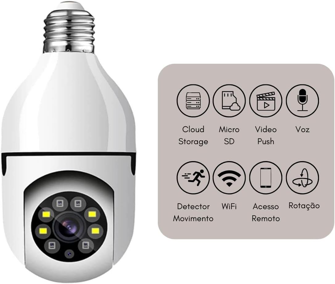Garanta mais segurança para sua casa com praticidade e tecnologia! A Câmera Lâmpada com bocal E27 é a solução perfeita para quem busca vigilância discreta, eficiente e de fácil instalação. Basta rosqueá-la em um soquete de lâmpada comum – sem fios ou complicações.