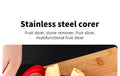 Multifuncional: Fatiador, descaroçador e descascador em um único utensílio, perfeito para saladas, lanches e preparos rápidos.
