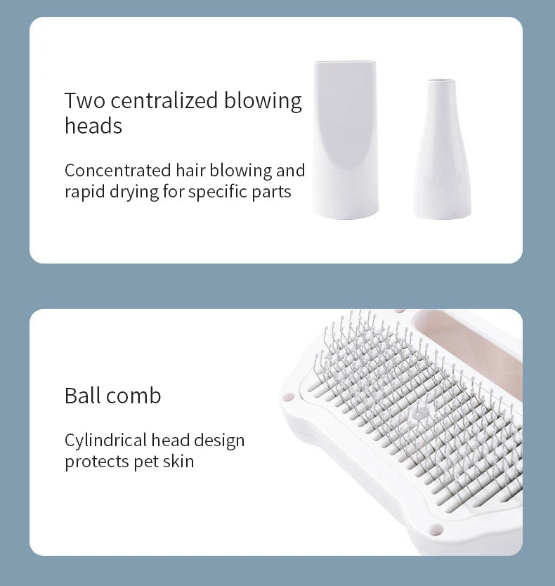3 in 1 Kit for Pets - Silent Dryer for Dogs with Brush, Comb for Cats and Dogs, Low Noise and Temperature Control