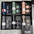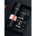 500ml Stainless Steel Thermal Bottle Kit With 3 Cups Camping Travel Coffee (Black)
