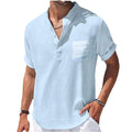 Men’s Casual Stand Collar Linen Shirt – Short Sleeve Summer Top with Pocket | Breathable, Loose & Trendy Design