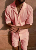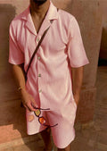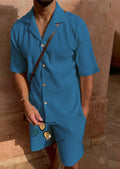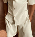 Stylish Two-Piece Set: Includes a short-sleeve corduroy shirt (full button closure) and matching shorts.