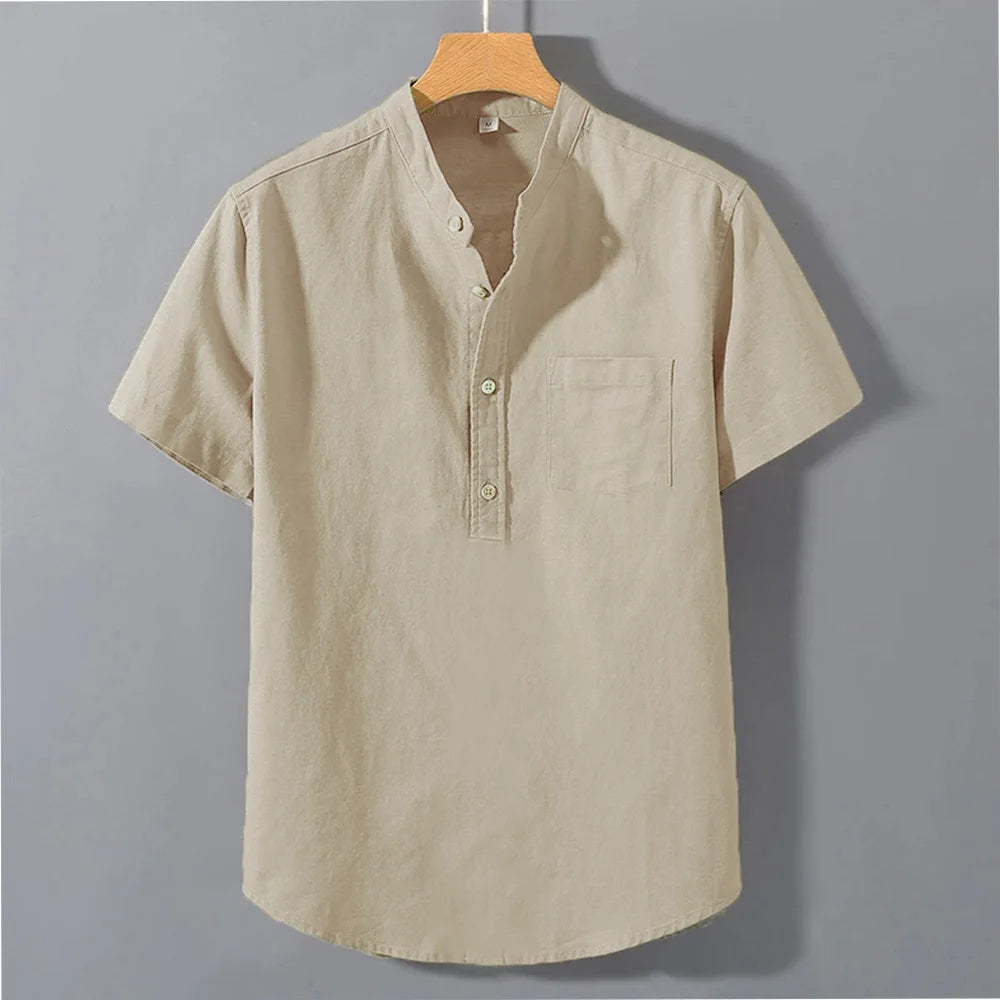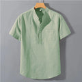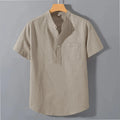 Upgrade your high-street summer wardrobe with this men’s short sleeve T-shirt, featuring a solid colour design with a practical pocket and button detail. Crafted from a cotton-linen blend, it is lightweight, breathable, and perfect for warm-weather wear. Ideal for everyday casual outings, shopping, holidays, or streetwear looks.