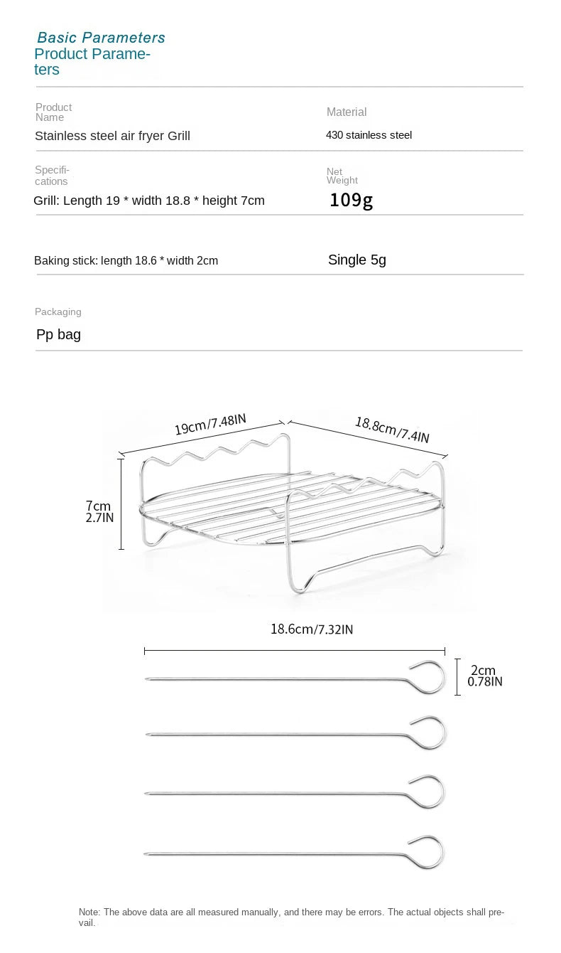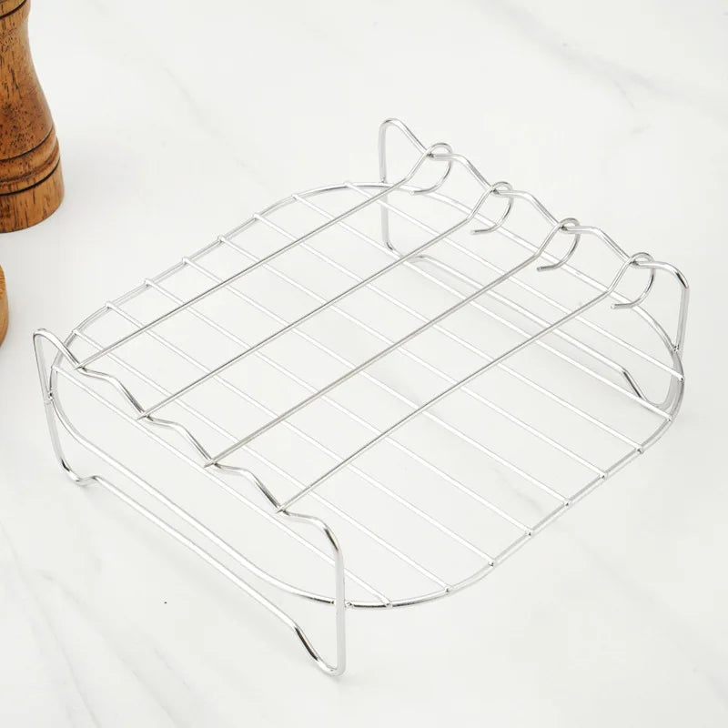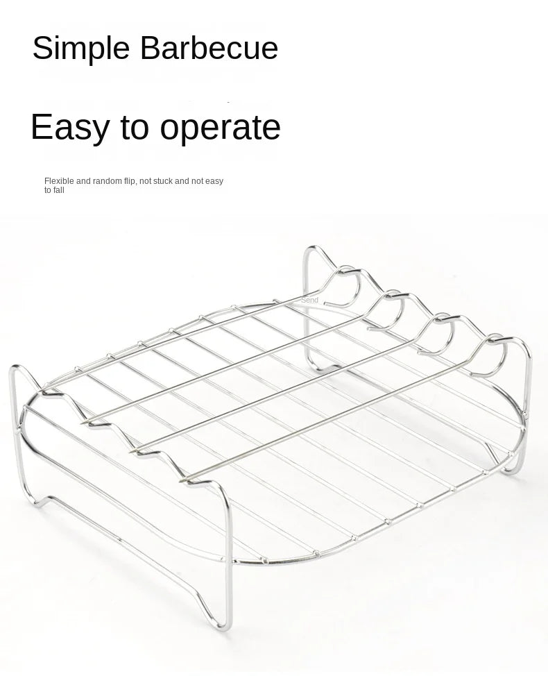Complete BBQ Set: Includes stainless steel skewers, a square grill, and an air fryer steamer with a convenient barbecue bracket – everything you need for outdoor grilling.